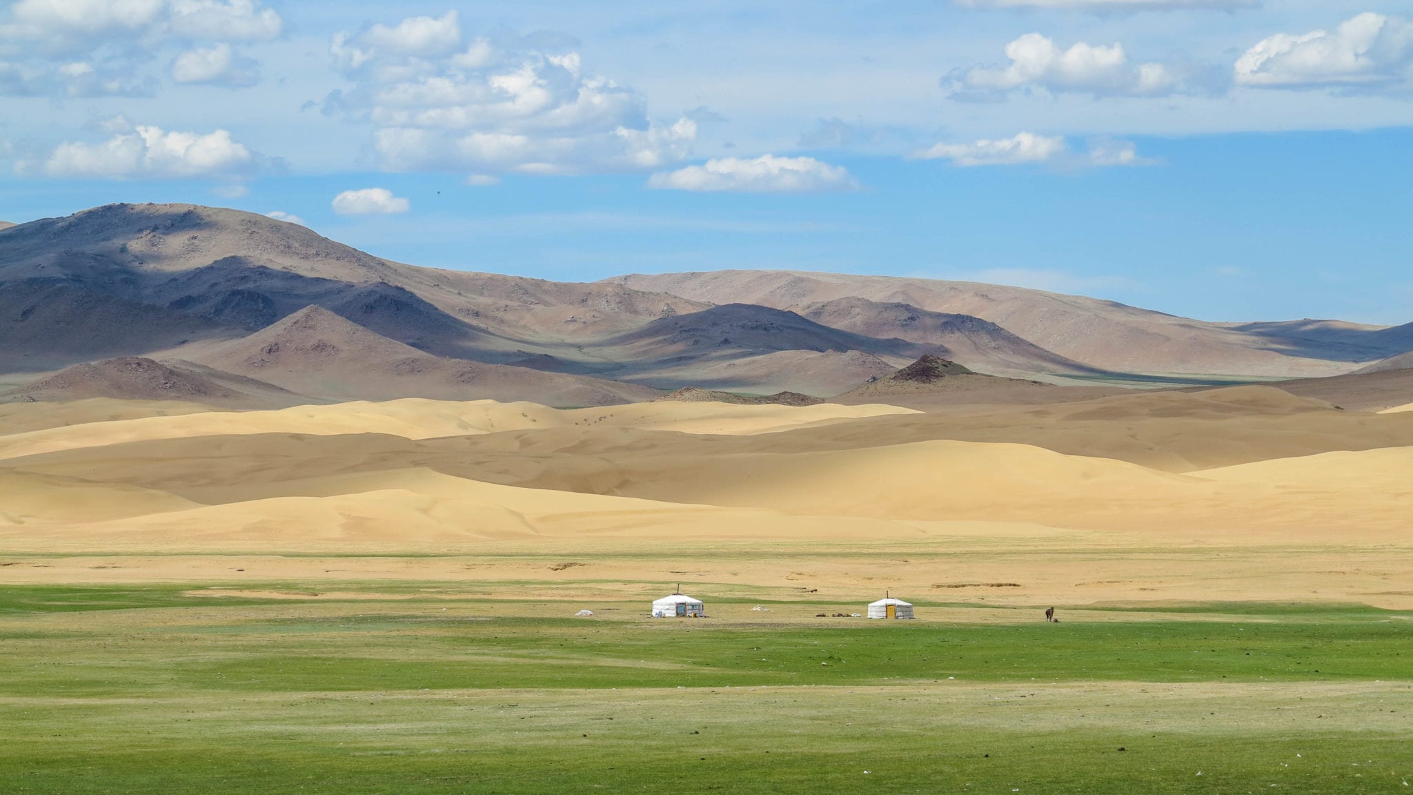Day 7 Drive to Bugat Sand Dunes After breaking up our camp site, we will drive to Bugat valley. Once we reach our destination, we will hike through the sand dunes. Keep your eyes out for the local wildlife alongside the green mountains and small creeks. There are many nomadic families in this area that we can visit. Accommodation: Bell Tent Travel: 50 KM (31 Miles); 2 hour drive Meals Included: Breakfast, Lunch, Dinner |
